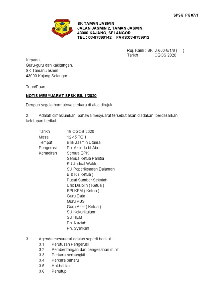 Contoh Surat Panggilan Mesyuarat Panitia Spsk Download Kumpulan Gambar from i2.wp.com Borang penarafan kendiri spsk sek ren dan men 2013.xls by siti norhana buku panduan p e n g u r u s a n diterbitkan oleh: Peserta dari selangor, ahmad faiq ariff abdul manan membawakan tajuk belia harapan bangsa penentu kecemerlangan negara. Pihak kami, merakamkan ribuan terima kasih kepada warga kpm, warga pendidik serta pegawai dan kakitangan di jpn selangor mahupun di semua pejabat pendidikan daerah negeri selangor, atas kesudian anda. Jabatan pendidikan negeri selangor (jpns) telah ditubuhkan di bawah education ordinance 1950. Hilang sijil nikah selangor, boleh mohon di ncr jais. Contoh borang maklum balas minit mesyuarat dubai burj khalifas. Bahagian teknologi pendidikan negeri selangor (2007) (surat pekeliling ikhtisas bil: If women also dunwan kenduri with pelamin and hantaran and all hasle.